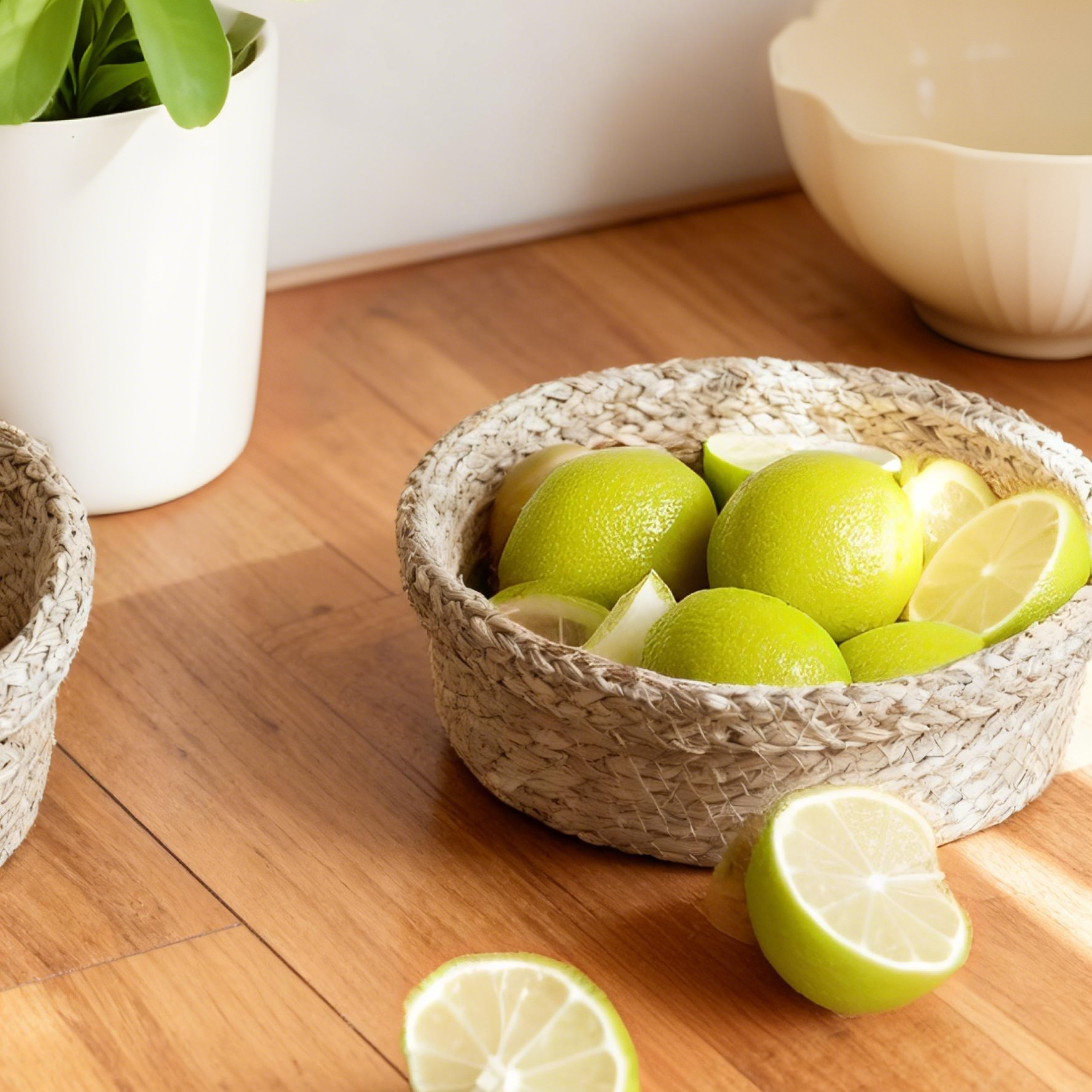 Made from natural seagrass. Handwoven, strong and stylish. Perfect for fruits, snacks or small things. Round shape fits tables. Adds eco – friendly look.